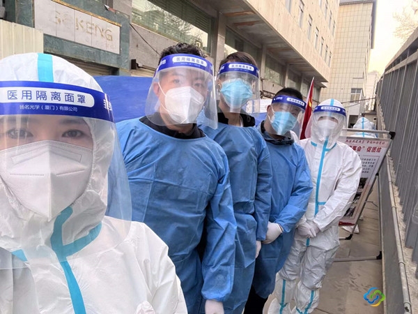 為全面貫徹落實(shí)習(xí)近平總書記關(guān)于疫情防控工作重要指示精神,堅決落實(shí)習(xí)近平總書記關(guān)于“人民至上、生命至上”等重大要求,貫徹落實(shí)省委省政府及省、市、區(qū)新型冠狀病毒感染的肺炎疫情防控處置工作指揮部工作部署,堅決打贏全省疫情防控殲滅戰(zhàn),進(jìn)一步有效阻斷新冠肺炎疫情擴(kuò)散,切實(shí)保護(hù)人民群眾生命安全和身體健康,我公司團(tuán)支部書記劉剛、團(tuán)員馬睿、馬玉枝、韓永秀、李淏盛五位同志積極響應(yīng)公司黨支部和西寧市城東區(qū)新冠肺炎疫情防控處置工作指揮部號召,主動請纓參加西寧市城東主城區(qū)常住人口、來寧人員核酸檢測工作。
